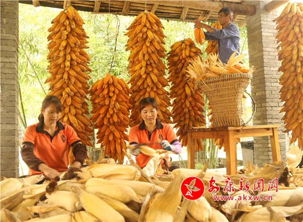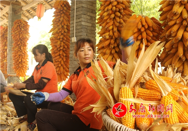 有的忙于運(yùn)送,有的忙于剝穗,有的忙于上架,豐收的喜慶洋溢在每一個角落。