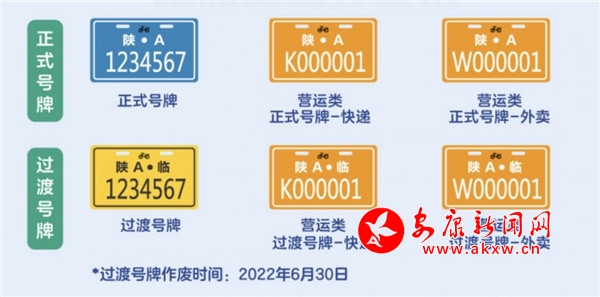 電動(dòng)自行車號(hào)牌號(hào)碼均為7位數(shù)字。正式的電動(dòng)自行車號(hào)牌底色為藍(lán)色,字體和框線為白色;過渡號(hào)牌底色為黃色,字體和框線為黑色。營(yíng)運(yùn)類號(hào)牌底色為橘色,字體和線框?yàn)榘咨?/span>