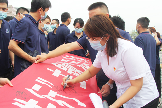 隨后現(xiàn)場職工還在無償獻(xiàn)血動員橫幅上集體簽名留念。