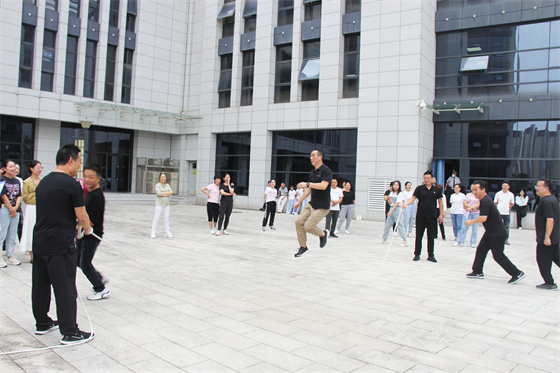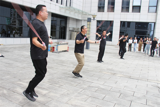 當(dāng)然比賽中還有許多“小插曲”,有的選手鞋帶松了,有的選手繩子扭了,有的選手眼鏡掉了,有的選手被大繩打到疼得哇哇叫,但正是因?yàn)橛辛诉@些小插曲,才讓參與者的笑聲更響,讓這場比賽變得更生動有趣,也讓“快樂工作、幸福生活”這句話有了最真實(shí)的體現(xiàn)。