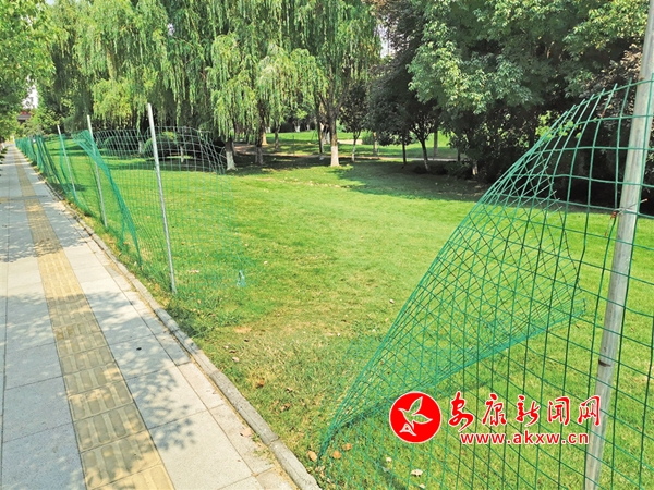 清明節(jié)期間,安康高新區(qū)運(yùn)動(dòng)公園內(nèi)5處圍網(wǎng)被游人破壞。(王琳 攝)