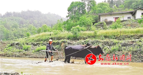 聽說要請(qǐng)他給我們講恒口貢米的故事,他煞有介事地愣了愣,說帶我們?nèi)ヌ镩g看看,再講。過了春分,耕種的土地上,我們感受到的是“農(nóng)家少閑月,五月人倍忙”的景象!在這里,沒有轟隆隆的機(jī)器聲,只用耕牛犁田,育苗平整,農(nóng)忙的身影在正暖的春陽(yáng)與如織的細(xì)雨中穿梭。