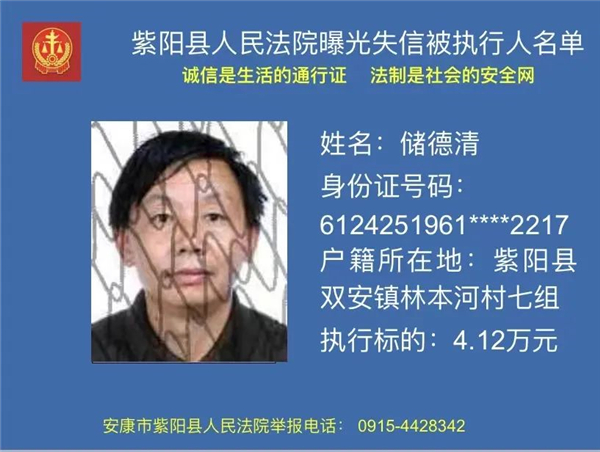 曝光失信 | 紫陽縣人民法院:關(guān)于敦促儲(chǔ)德清履行法定義務(wù)的公告