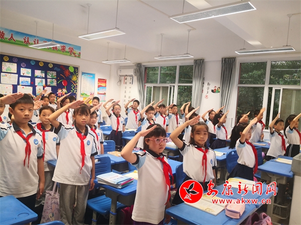嘹亮的國(guó)歌聲中,少先隊(duì)員們望著國(guó)旗的方向行隊(duì)禮,老師行注目,愛(ài)國(guó)之情在師生心中激蕩。六一中隊(duì)少先隊(duì)員代表周子辰做題為《國(guó)家雖安,忘戰(zhàn)必危;全民國(guó)防,有你有我》的國(guó)旗下發(fā)言,號(hào)召隊(duì)員們做勇敢、有智慧、有擔(dān)當(dāng)?shù)闹腥A好少年,刻苦學(xué)習(xí)科學(xué)文化知識(shí),將來(lái)為全民國(guó)防建設(shè),中華民族偉大復(fù)興的強(qiáng)國(guó)夢(mèng)貢獻(xiàn)力量。大隊(duì)輔導(dǎo)員為同學(xué)們宣講國(guó)防知識(shí),讓同學(xué)們了解到國(guó)防安全與自身息息相關(guān),是每個(gè)公民的責(zé)任。
