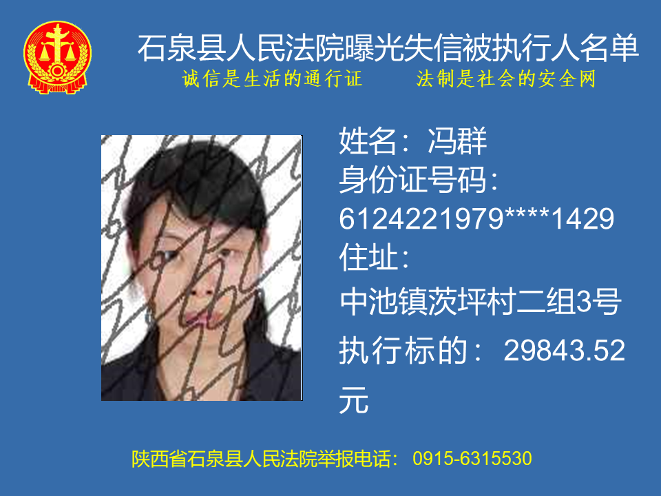 曝光失信 | 石泉縣人民法院曝光失信被執(zhí)行人名單(2023年第六期)