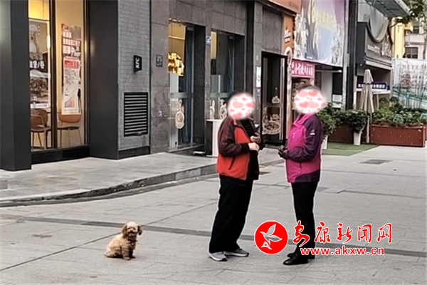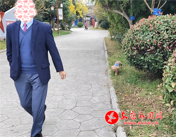 11月8日下午,興安公園小廣場(chǎng)內(nèi)有市民遛狗未牽繩,寵物犬綠地隨意便溺。(圖文/周薇)
