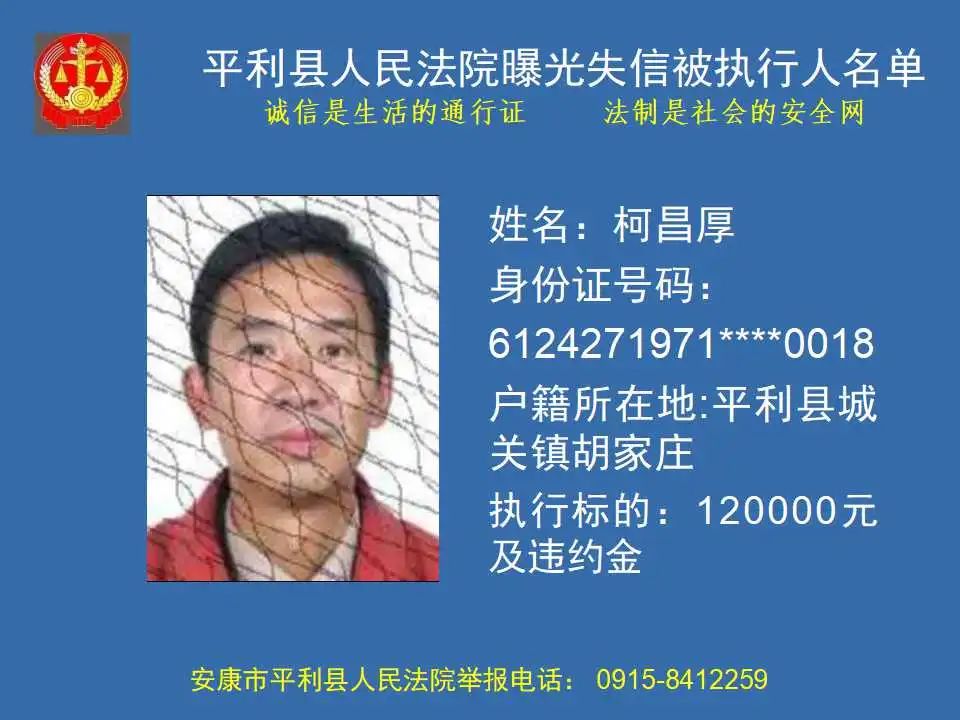 曝光失信 | 平利縣人民法院曝光失信被執(zhí)行人名單(2023年第四期)
