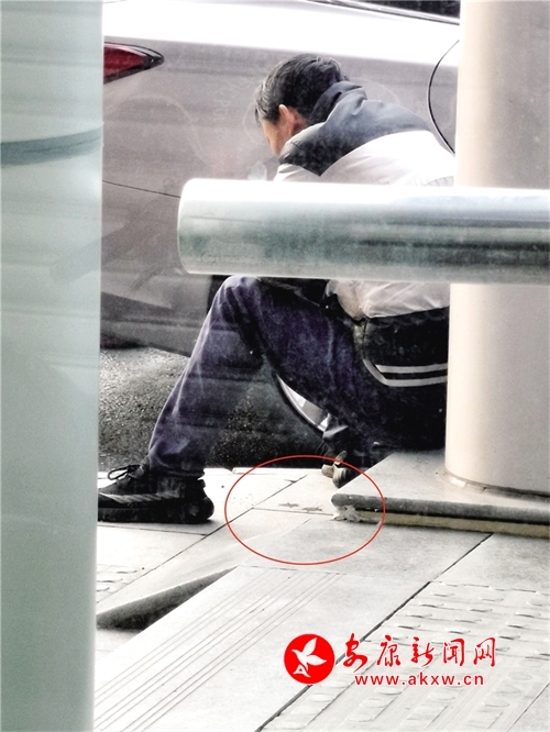 11月23日,有市民在安康城區(qū)江北大道地下通道出入口隨地吐痰。記者 潘潤(rùn)生 攝?