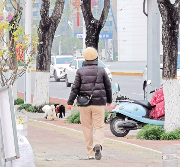 12月21日,在安康大劇院附近,有市民遛狗不牽繩。記者 潘潤(rùn)生 攝