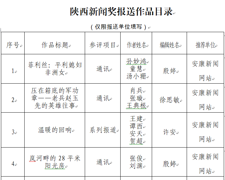 經(jīng)過1月30日編委會(huì)推薦、社黨委研究決定,擬推薦以下4件新聞作品參評2023年度“陜西新聞獎(jiǎng)”。公示時(shí)間從2024年3月6日至2024年3月12日,公示期為5個(gè)工作日。如有不同意見,請向安康日報(bào)社機(jī)關(guān)紀(jì)委、新聞管理部反映。