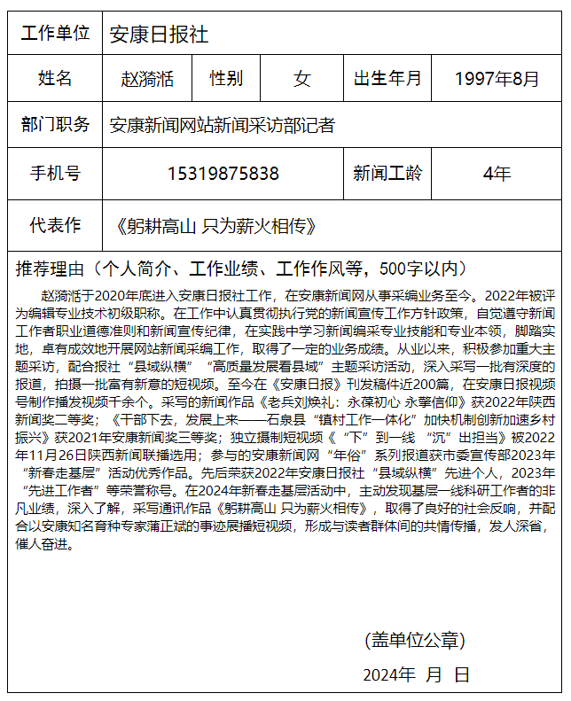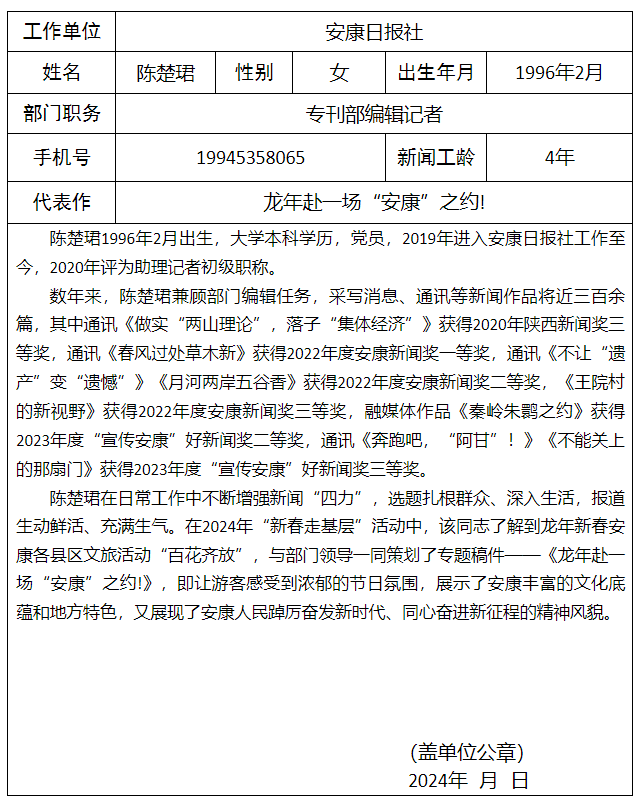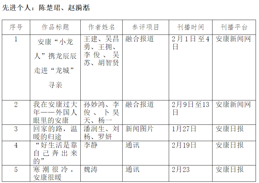 安康日報社擬參評2024年“新春走基層”先進個人及新聞作品公示