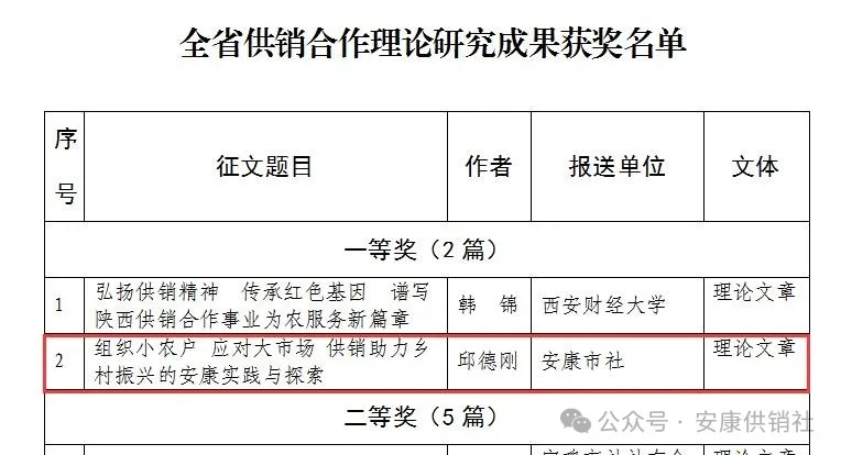 按:本文系安康市供銷合作社黨組書記、理事會(huì)主任邱德剛署名理論文章,立足供銷助力鄉(xiāng)村振興的安康實(shí)踐與探索,深入闡述了“組織小農(nóng)戶應(yīng)對(duì)大市場(chǎng)”的內(nèi)在邏輯,把群眾“組織起來”投身經(jīng)濟(jì)合作的實(shí)踐方法,在助力鄉(xiāng)村振興、推進(jìn)共同富裕實(shí)踐中探索出一條可復(fù)制可推廣的典型經(jīng)驗(yàn),其理論內(nèi)涵、實(shí)踐邏輯為在推進(jìn)鄉(xiāng)村振興中更好發(fā)揮供銷社的獨(dú)特優(yōu)勢(shì)和重要作用提供了有益參考,具有較強(qiáng)的指導(dǎo)意義。該文在中華全國(guó)供銷總社和陜西省供銷總社“薪火相傳七十載,砥礪奮進(jìn)新時(shí)代”主題征文中獲評(píng)“全省供銷合作理論研究成果一等獎(jiǎng)”。