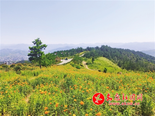 現(xiàn)在的牛蹄嶺已然成了安康城區(qū)市民休閑納涼的好去處,特別是下午夕陽西下時,大量人群涌入到牛蹄嶺景區(qū),在興賢塔向東一百米左右,穿過彩虹柏油路便可抵達一大片萬壽菊競相綻放的花海,花團錦簇的場景引得路人駐足觀賞、打卡留影。徜徉在花海、藍天、白云、微風、蟲鳴組合而成的風景里,身心都倍感愉悅。在這里不僅可以看到花海,站在觀景臺遠眺,安康城區(qū)的景色也可一覽無余。待到夕陽西下時,與夕陽、花海合影留念,頗有“滿城盡帶黃金甲”之感。