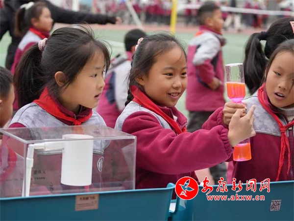 在各個(gè)科學(xué)實(shí)驗(yàn)項(xiàng)目前,同學(xué)們駐足停留,認(rèn)真觀(guān)察、反復(fù)操作,沉浸在知識(shí)的海洋與科技的奧秘中,操場(chǎng)上不時(shí)傳來(lái)陣陣驚嘆聲?!拔易罡信d趣的是機(jī)器人,通過(guò)手柄遙控能讓機(jī)器人模仿奔跑跳躍,跟我們打招呼,真是太神奇了,我以后要更加努力地學(xué)習(xí)科學(xué)知識(shí),探索更多的未知領(lǐng)域?!蔽迥昙?jí)一學(xué)生激動(dòng)地說(shuō)。