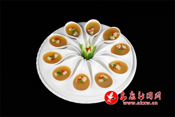 “紫陽洄水魚宴”由8個涼菜,即:香酥小魚、干煸牛肉、茶香魚皮、鱘魚凍、撈汁七彩花生、酸辣四拼、雙色變蛋、涼拌折耳根;8個熱菜即:茶香鱘魚、紫蘇魚片、熗鍋鯉魚、釀羊肚菌、辣子雞、臘味三拼、魚頭燉黑豆腐、當歸白蘿卜燉羊肉;一個湯菜:魚丸湯;3道小吃即:魚肉餃子、茶香餅、紫菜魚餅;主食:金銀米飯、酸菜面和飯后水果拼盤組成。據(jù)了解該宴席是繼漢濱區(qū)流水魚宴、石泉縣江魚魚宴之后,全市公開推向市場的第三個以魚為主料的專業(yè)魚宴。?