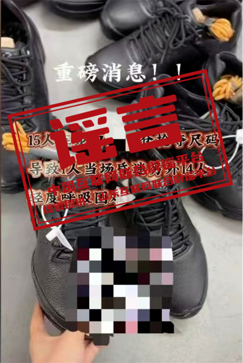 真相:近日,有網民在某平臺上發(fā)布視頻稱:“重磅消息!!15人在龍口某倉庫搶奪尺碼,導致1人當場昏迷,另外14人輕度呼吸困難,天降之禍”,引發(fā)社會關注。山東龍口網信部門巡查發(fā)現該情況后立即聯合當地公安部門啟動調查程序。調查發(fā)現,此視頻發(fā)布者系當地品牌運動折扣店店主劉某。圖中“搶奪尺碼”是指斷碼甩賣的鞋子,有時商家為吸引顧客會搞類似的優(yōu)惠活動。而劉某為博取流量,吸引關注,自行編造并發(fā)布了上述謠言。目前,龍口公安已依法對劉某進行行政處罰。(來源:山東互聯網聯合辟謠平臺)