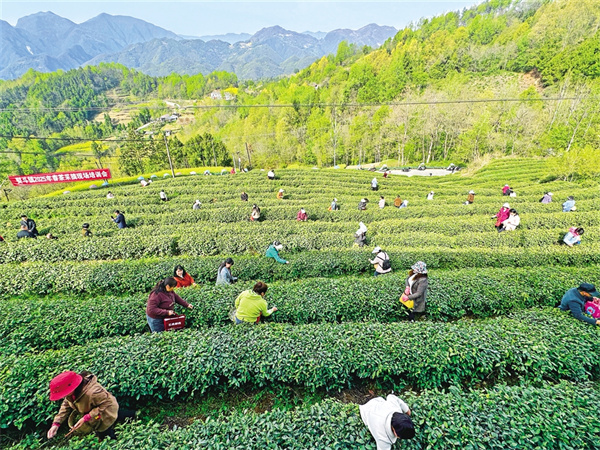 “開園嘍!”春茶采摘在嘹亮的號子聲中拉開帷幕,茶農們頭戴遮陽帽、身挎竹簍,穿梭于青翠茶壟間,指尖在嫩芽間游走,陣陣茶葉清香伴隨著歡聲笑語回蕩山間。