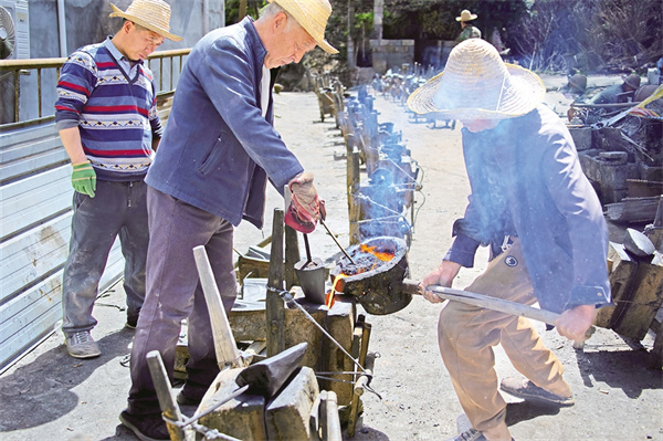 宋祖新的叔祖父是當(dāng)年鏵廠的“掌勺”師傅之一,在一次次觀看大人們操作中,他也學(xué)會了從制模到熔鐵澆鑄一整套鑄鏵技術(shù)。隨著農(nóng)業(yè)科技的發(fā)展,傳統(tǒng)的鐵鏵制作工藝逐漸被機(jī)械化生產(chǎn)所取代,但在陜南一些山區(qū)坡地仍延續(xù)著犁鏵耕作方式?!扒靶┠辏鄶?shù)人都選擇外出務(wù)工,種地的少,好多年沒有開爐鑄鏵了,很多年輕人都沒有親自體驗過制作過程,聽說我們這兒又開始鑄鏵,連縣城的人都趕來看稀奇!”宋祖新說。