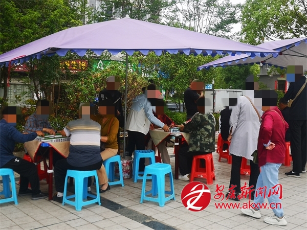 本網(wǎng)訊(記者 周健 李?。┙冢粩嘤凶x者向《安康日?qǐng)?bào)?漢江晨刊》反映:安康城區(qū)東郡廣場(chǎng)和周邊人行道上有多人擺牌桌,供周邊居民打麻將和“挖坑”,嚴(yán)重影響城市形象。