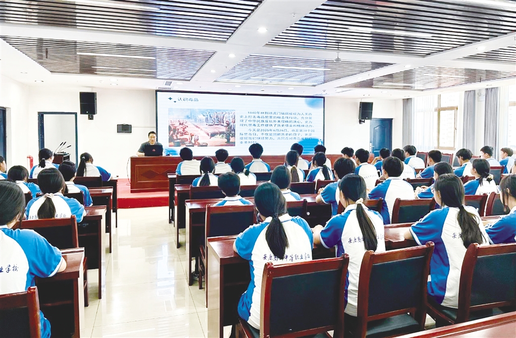 在禁毒宣講環(huán)節(jié),法官通過圖文并茂的方式展示了常見毒品的種類、特性和危害,指導(dǎo)學(xué)生提高辨別能力,增強(qiáng)自我保護(hù)意識,并告誡學(xué)生們要時刻保持警惕,堅決抵制毒品侵害。