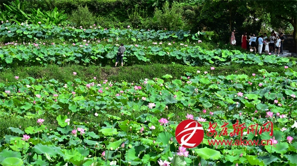 連日來,平利縣廣佛鎮(zhèn)余家灣百畝荷塘花開爭(zhēng)艷,引得游人或駐足細(xì)品荷韻,或輕倚棧道拍攝留影。王韜 攝?