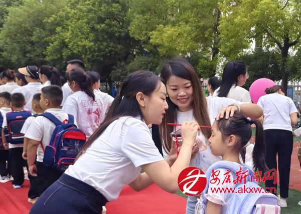 走紅毯環(huán)節(jié)將氛圍推向高潮。班主任帶領(lǐng)新生與家長手牽手緩緩前行,周圍的歡呼聲此起彼伏,孩子們在這份熱鬧中,真切感受到“成為小學(xué)生”的榮譽(yù)感?!懊6Y”環(huán)節(jié)巧思滿滿,8種寓意吉祥的物品整齊擺放,孩子們懷著好奇伸手觸摸,在指尖的互動中,收下滿含期許的祝福。