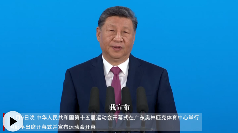 11月9日晚,中華人民共和國第十五屆運(yùn)動(dòng)會(huì)在廣東省廣州市隆重開幕。中共中央總書記、國家主席、中央軍委主席習(xí)近平出席開幕式并宣布運(yùn)動(dòng)會(huì)開幕。