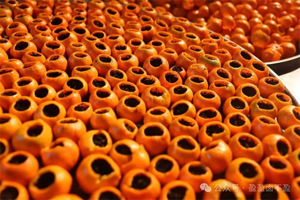 茶廠的工人們?cè)缫衙β灯饋?。他們將一個(gè)個(gè)挑選好的金錢桔仔細(xì)清洗掉表面的灰塵。特制的小刀輕輕掀開桔帽,果肉被小心掏出,留下一個(gè)完整的桔殼,然后再小心翼翼地清洗8至10次,直到桔皮的苦澀味兒全部去掉才能進(jìn)行攤涼。那認(rèn)真的模樣仿佛在對(duì)待一件件珍貴的藝術(shù)品,陽光透過窗欞,照在攤涼的桔殼上,泛著琥珀般的光澤。