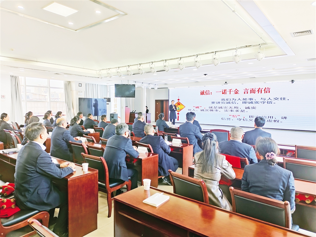 宣講會以“筑牢內部誠信意識,傳遞文明金融溫度”為目標,面向管理人員及員工代表展開深度分享。宣講團隊結合金融行業(yè)特點與文明城市創(chuàng)建要求,從“誠信是金融服務的生命線”“員工誠信素養(yǎng)與客戶信任的關聯(lián)”“行內誠信服務案例與文明規(guī)范”三個方面破題,通過剖析業(yè)務場景中的誠信服務案例,宣講征信知識與行業(yè)誠信準則,讓員工深刻理解“誠信”不僅是社會文明的基石,更是金融服務的核心底色。在誠信服務承諾互動環(huán)節(jié),員工代表結合崗位實際分享服務心得。與會人員簽署了《誠信服務承諾書》,并將誠信理念轉化為崗位實踐的具體標準,進一步強化“人人都是文明使者,事事關乎文明創(chuàng)建”的責任意識。