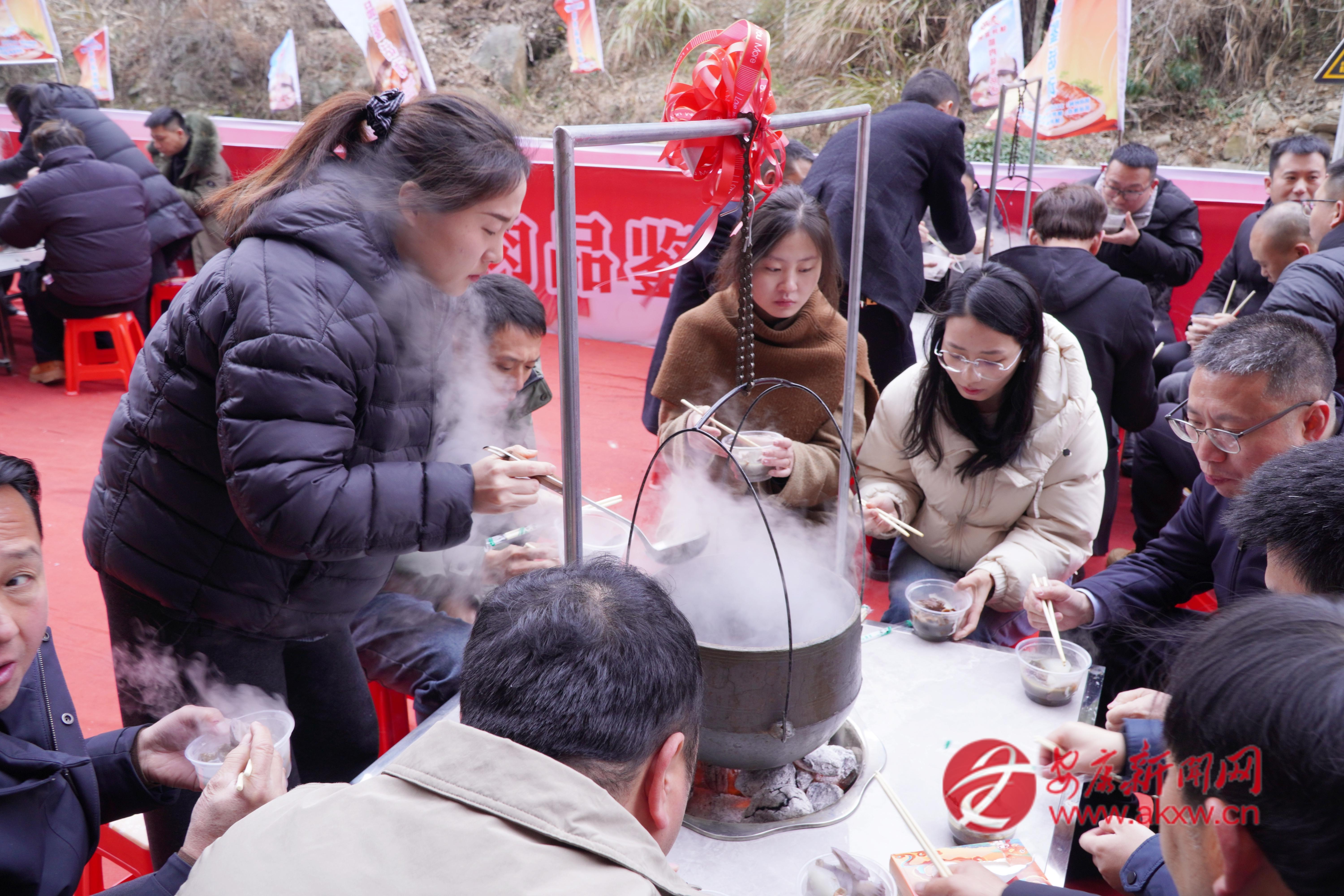 活動(dòng)現(xiàn)場,一口巨型大鐵鍋格外引人注目,它可以燉500斤肉,可供1000人同時(shí)品嘗鎮(zhèn)坪富硒臘肉。同時(shí),20個(gè)吊鍋中,臘肉與香菇、竹筍、干洋芋果果一同燉煮,香氣四溢,讓人垂涎欲滴。賓客們圍坐一起有說有笑,品嘗著可口地道的鎮(zhèn)坪臘肉,不僅是一場臘肉美食的集會(huì),更是一種非遺技藝的傳承?!霸缇吐犝f陜南鎮(zhèn)坪的富硒臘肉有名,這次專程趕來,就為這一口地道的臘味,品嘗后覺得這臘肉的味道太美了!”在活動(dòng)現(xiàn)場,一位來自西安的游客李先生在品嘗鎮(zhèn)坪臘肉后高興地說道。