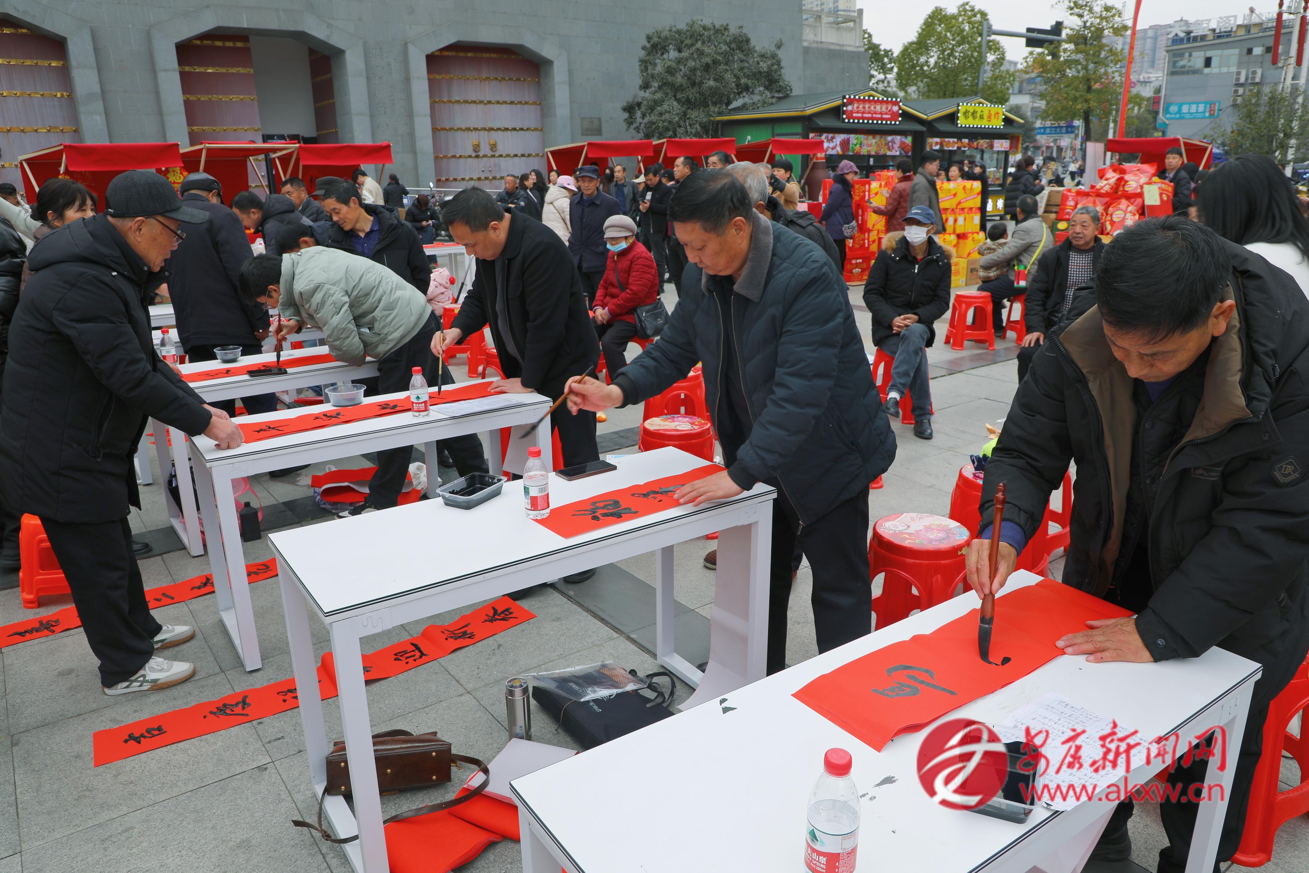 活動開場,鏗鏘的舞獅表演點(diǎn)燃全場熱情,漢調(diào)二黃盡顯秦巴韻味,嘹亮的歌唱與精妙的川劇變臉輪番上演,獨(dú)具特色的文藝演出贏得市民群眾陣陣掌聲,其間的抽獎(jiǎng)活動與趣味娛樂環(huán)節(jié),吸引市民沉浸式參與其中,更是將節(jié)日的歡樂氛圍推向高潮。另一邊,市文化產(chǎn)業(yè)協(xié)會的書法家們揮毫潑墨,一副副喜慶的大紅春聯(lián)、一張張吉祥的福字帶著墨香送到群眾手中。