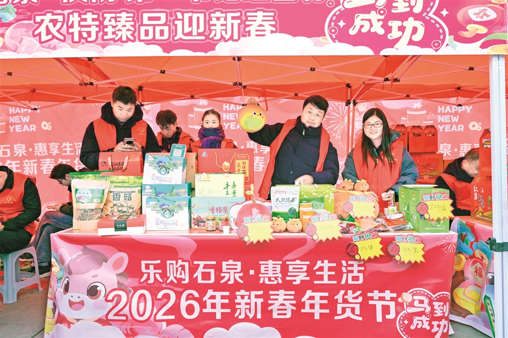 石泉縣2026年年貨節(jié)暨春季產(chǎn)業(yè)大招工·蘇陜勞務(wù)協(xié)作招聘會(huì)啟動(dòng)儀式近日在秦巴風(fēng)情園舉行。本次活動(dòng)創(chuàng)新融合“春風(fēng)行動(dòng)”招聘會(huì)、年貨節(jié)與文旅促銷(xiāo),吸引了縣內(nèi)外210余家重點(diǎn)企業(yè)參與,集中提供4500個(gè)優(yōu)質(zhì)崗位,旨在促進(jìn)就業(yè)與消費(fèi),助力縣域經(jīng)濟(jì)發(fā)展。(董長(zhǎng)松 攝)