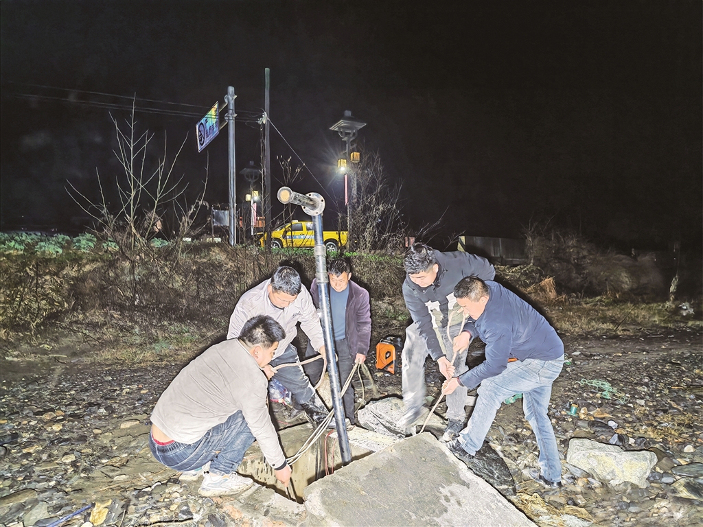 ⑨ 2月16日(除夕)凌晨,漢陰縣農(nóng)村供水有限責(zé)任公司工作人員連夜搶修水泵,保障雙河口鎮(zhèn)鳳柳村全村約1500人節(jié)日用水。王延濤 攝