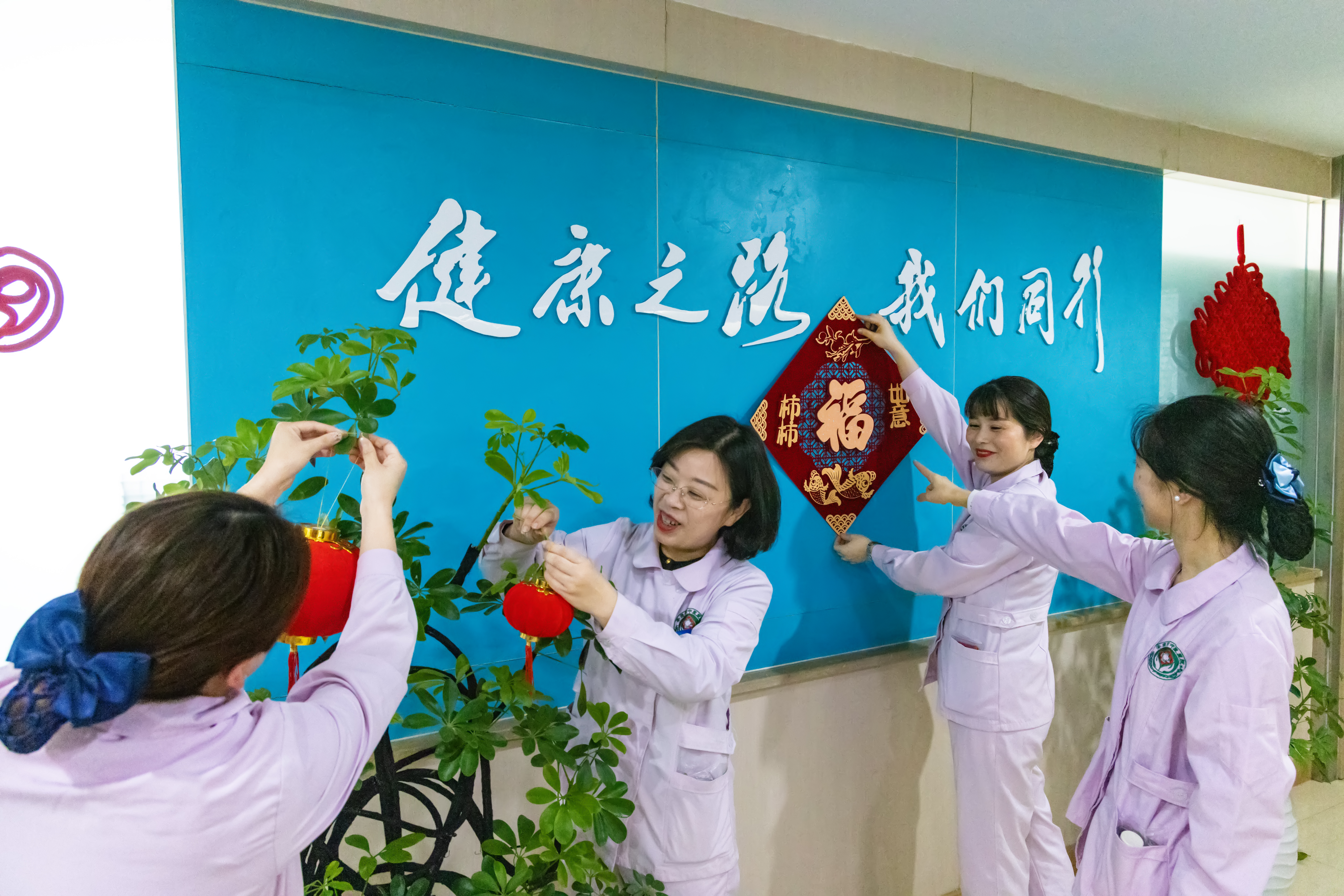 ⑦ 春節(jié)值守的安康市中醫(yī)醫(yī)院老年病工作人員將護士站裝飾一新,為醫(yī)患營造溫馨的節(jié)日氛圍。郭圣杰 攝