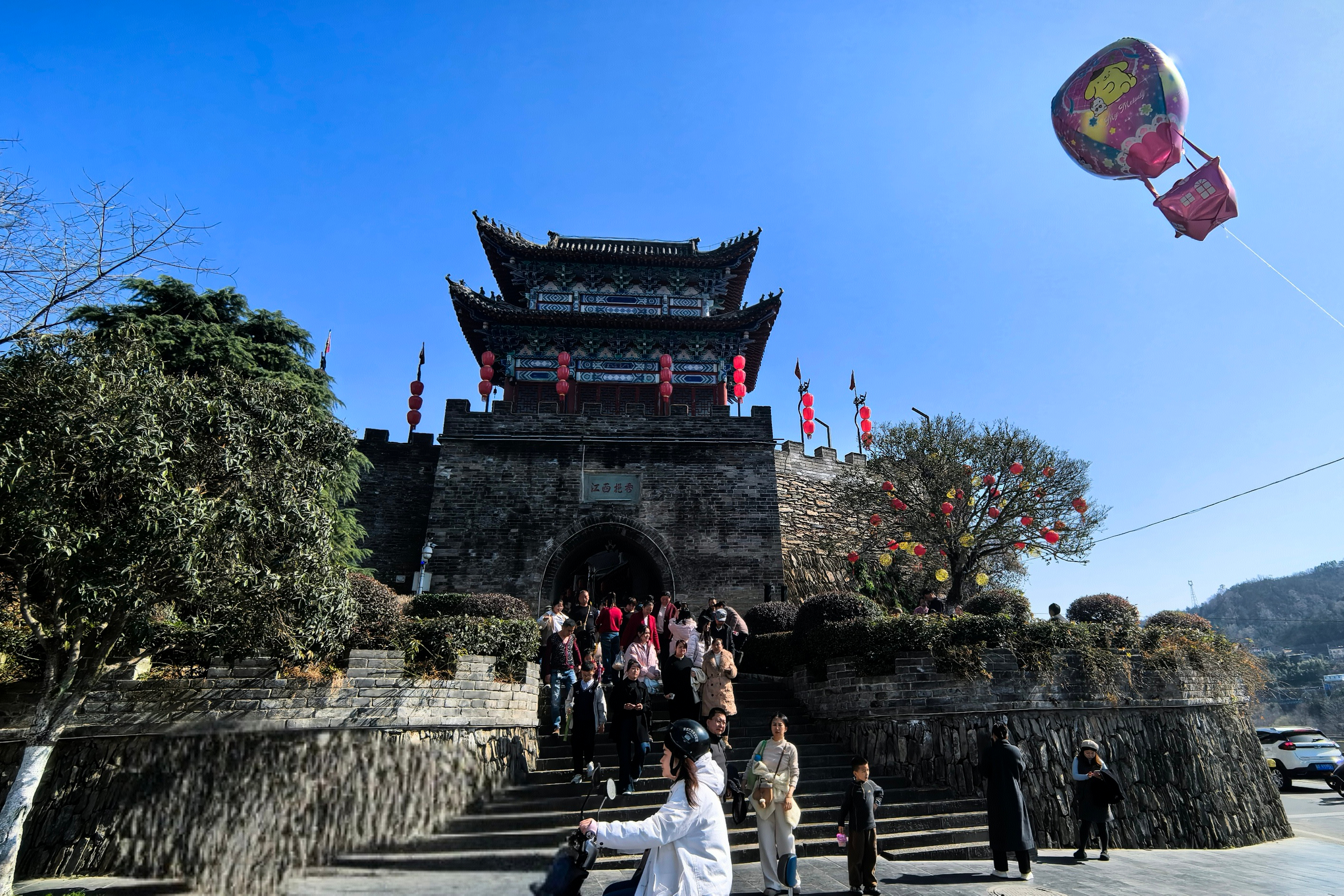 石泉秦巴老街的西門城樓下熙熙攘攘。 孟少猛 攝