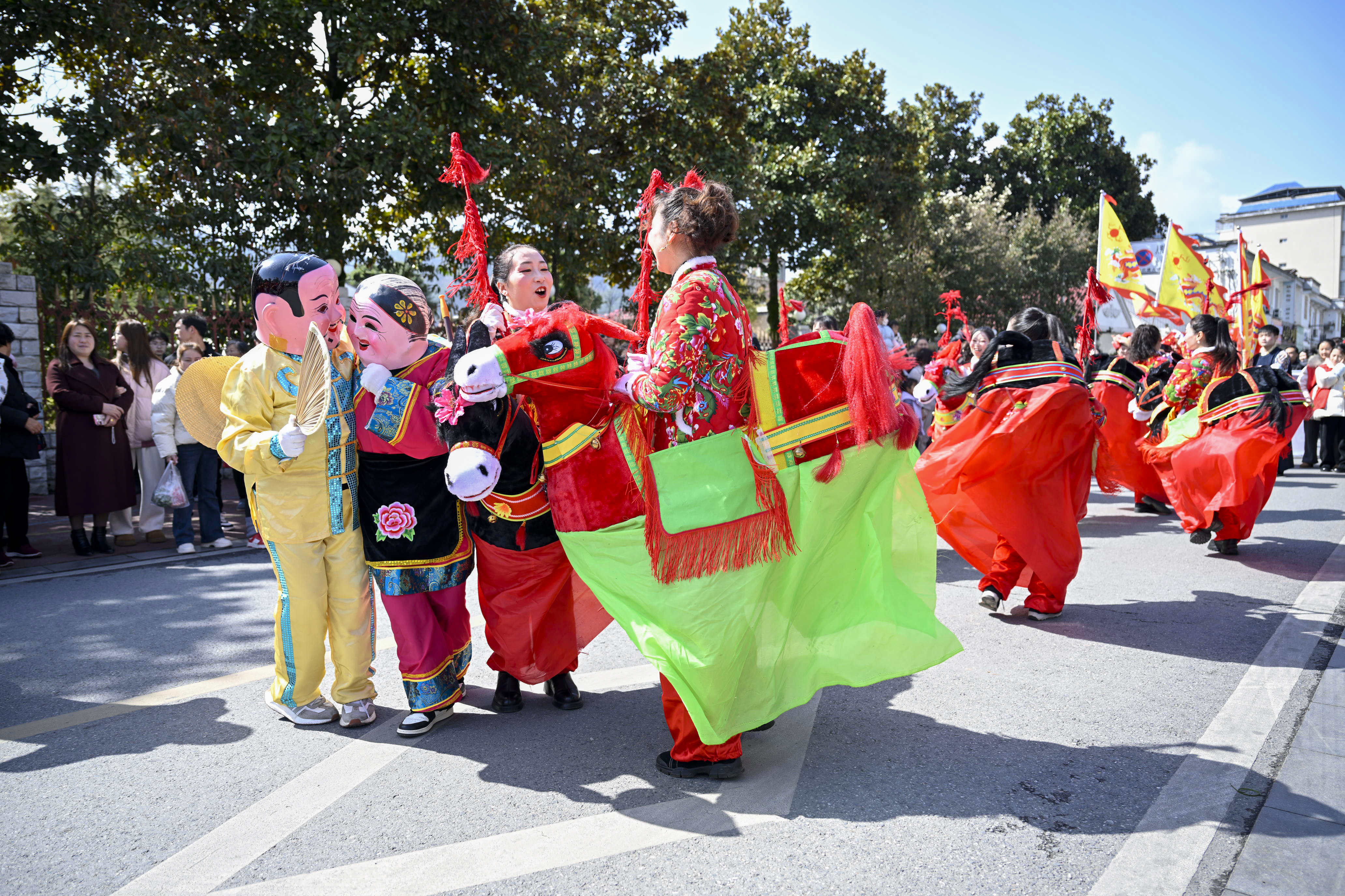 2月24日,石泉縣舉辦了“龍馬精神·十美畫卷”春節(jié)民間文化藝術展演巡游。來自民間的22支隊伍盛裝上陣,為市民和游客帶來了舞獅、舞龍、采蓮船、秧歌等特色民俗表演,營造出濃厚的節(jié)日氛圍。董長松 攝
