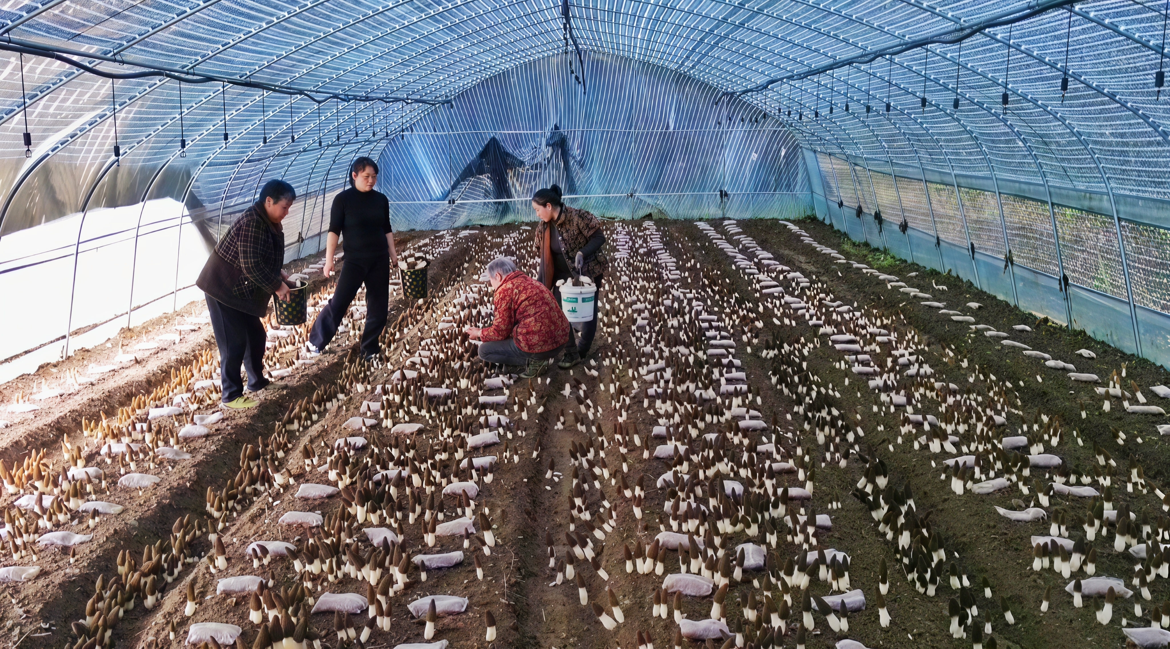 △ 喜河鎮(zhèn)大雁村羊肚菌種植基地采摘現(xiàn)場