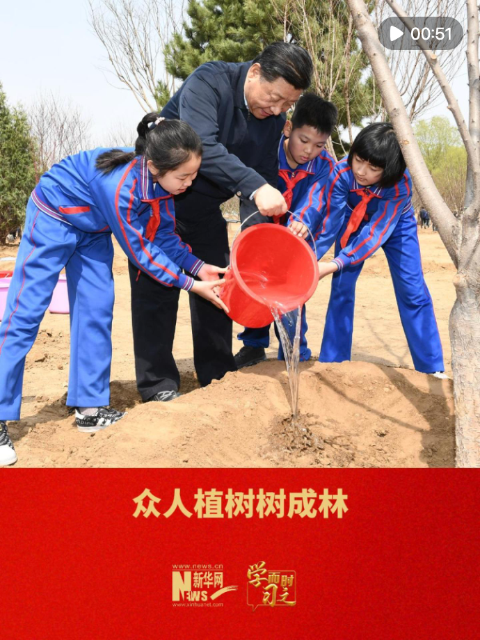 黨的十八大以來(lái),習(xí)近平總書(shū)記每年都會(huì)身體力行,參加首都義務(wù)植樹(shù)活動(dòng)。他強(qiáng)調(diào),讓我們從自己、從現(xiàn)在做起,把接力棒一棒一棒傳下去。