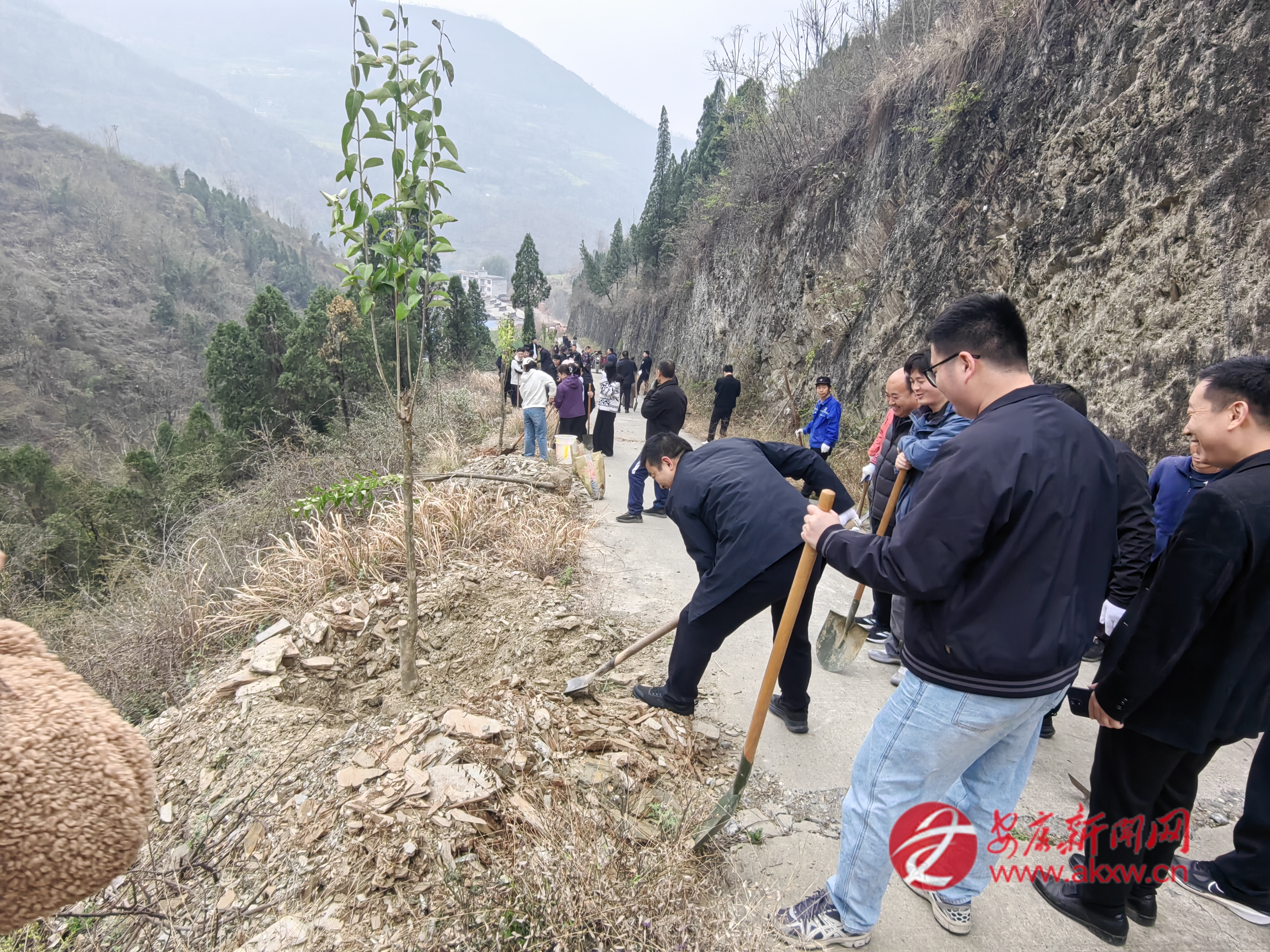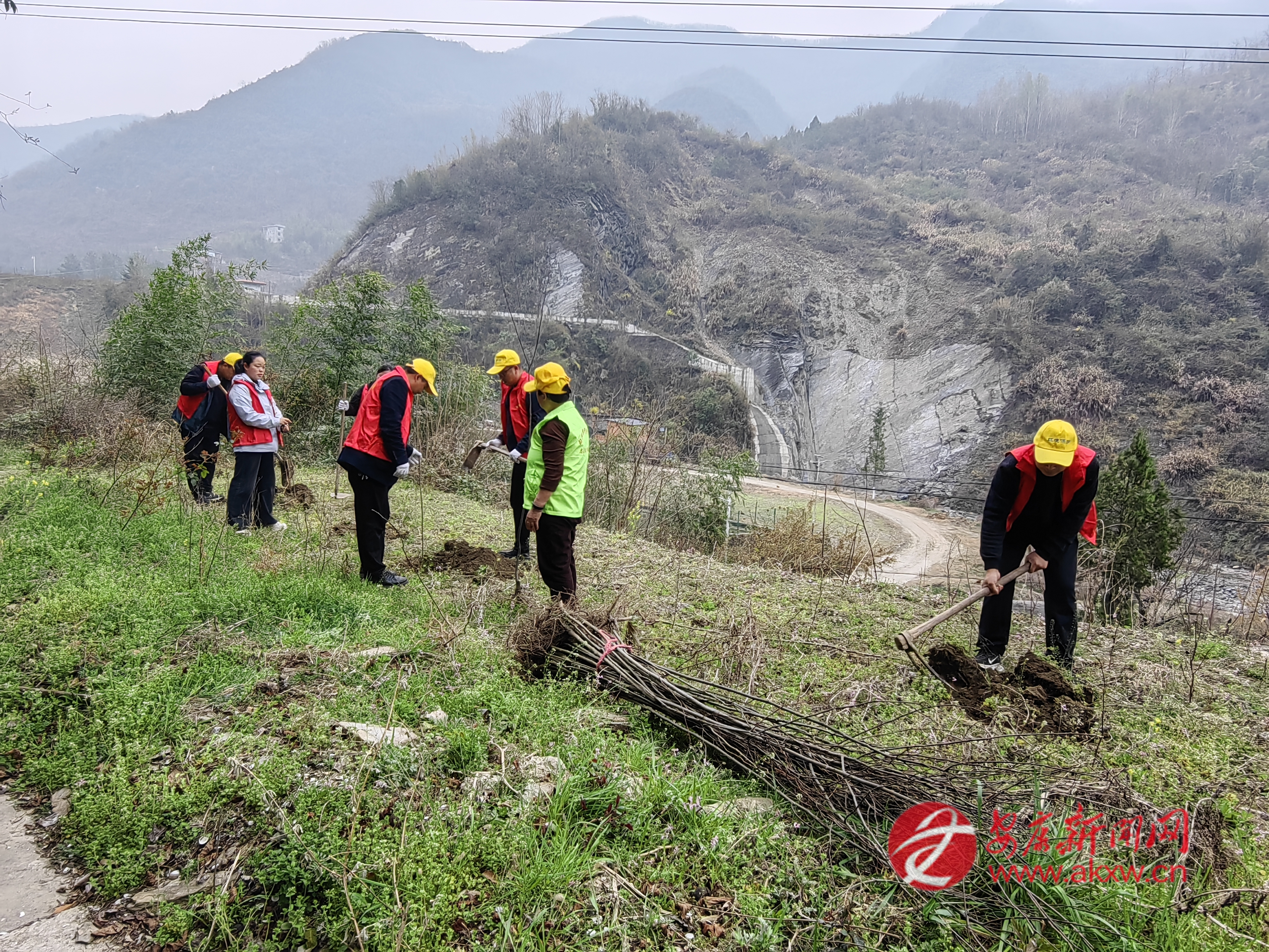 紅軍鎮(zhèn)組織機(jī)關(guān)干部、豐積社區(qū)黨員干部及群眾代表在李家院子開展義務(wù)植樹活動(dòng)