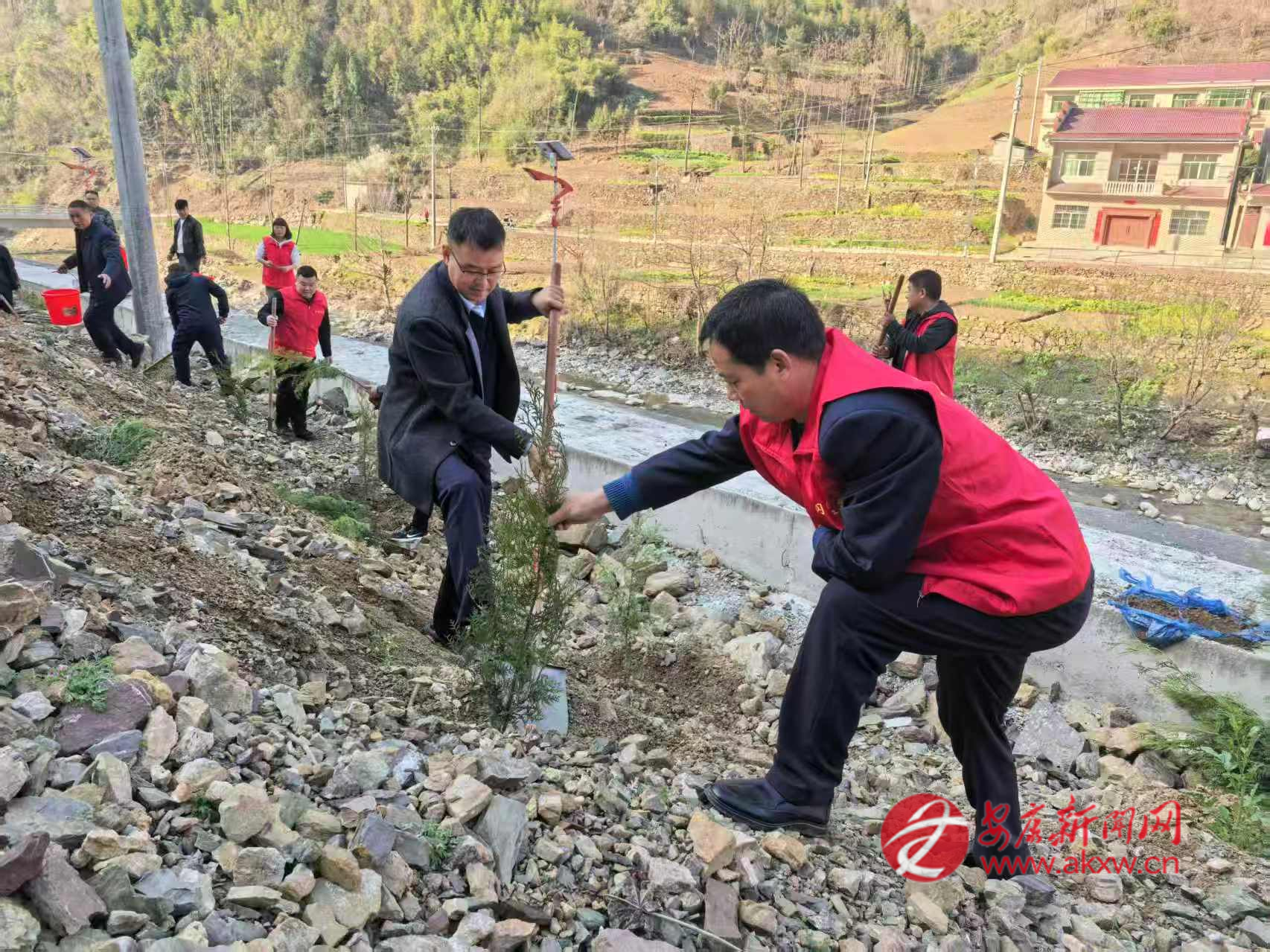 仙河鎮(zhèn)、鄖西縣景陽(yáng)鄉(xiāng)、旬陽(yáng)市天保站黨支部聯(lián)合開展以“同造一片林、共護(hù)一江水”為主題的義務(wù)植樹活動(dòng)